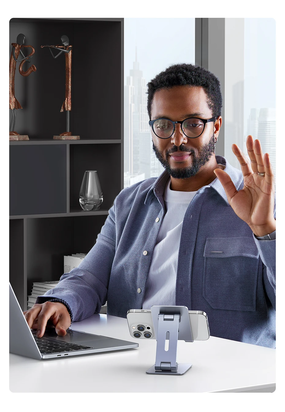 This Aluminum Phone Holder Stand features a foldable structure, making it easy to carry in your bag or backpack. Whether you are working remotely, traveling, or moving between office spaces, this stand offers convenience and portability.