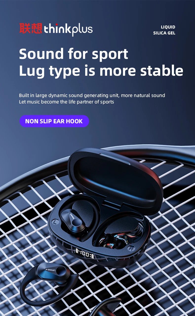 The Lenovo LP75 TWS Earphones feature an ergonomic medical-grade silicone ear hook design that keeps earbuds securely in place during running, cycling, gym sessions, or high-intensity workouts. Say goodbye to loose earbuds disrupting your flow.