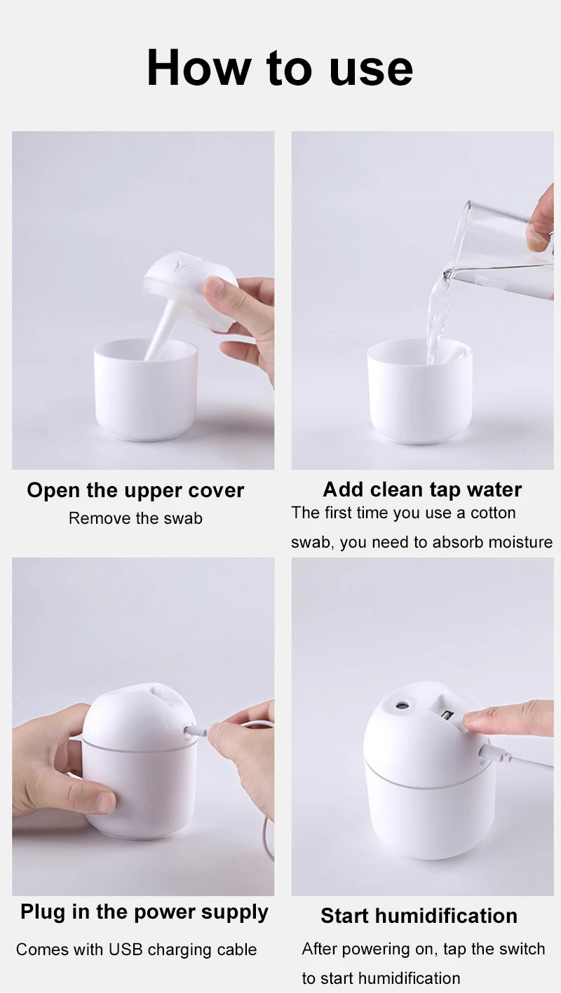 One of the most important features of the Mini USB Air Humidifier is its ultra-quiet operation. The device works with minimal noise, making it perfect for use during sleep, meditation, or focused work.